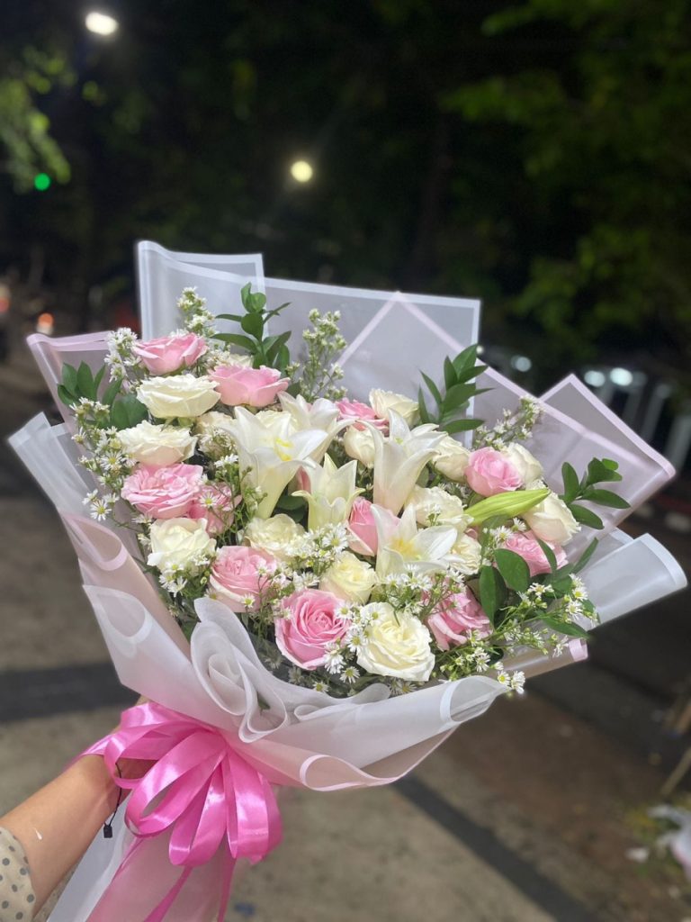 π Rekomendasi: Hand bouquet pink rose & bunga lily βSerene Bloomsβ
