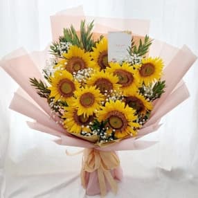 π Rekomendasi: Buket sunflower & babyβs breath βΒ Blushing Sunriseβ
