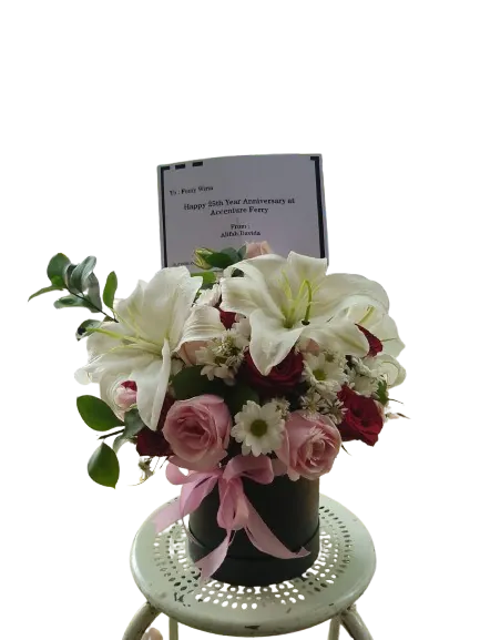 Berikan hadiah istimewa dengan Flower Box Eksklusif ini! Rangkaian bunga mawar, aster, dan lily yang elegan dan mewah, menciptakan tampilan yang indah dan berkesan. Pilihan sempurna untuk menyampaikan cinta, kebahagiaan, dan apresiasi kepada orang tersayang.