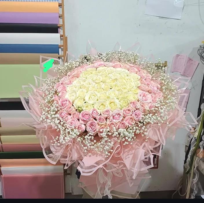 Inilah yang membuat Hand Bouquet 100 Mawar Pink & Putih dari Raja Florist Semarang menjadi simbol cinta yang manis, tulus, dan elegan.