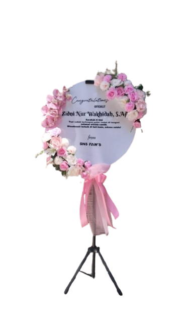 Ingin memberikan ucapan selamat atau belasungkawa dengan cara yang lebih modern dan elegan? Bunga papan akrilik dari Raja Florist Semarang hadir sebagai pilihan terbaik. Dengan desain berbahan dasar akrilik berdiameter 60 cm, dihiasi bunga artificial premium, papan ini memberikan kesan eksklusif, rapi, dan tahan lama.