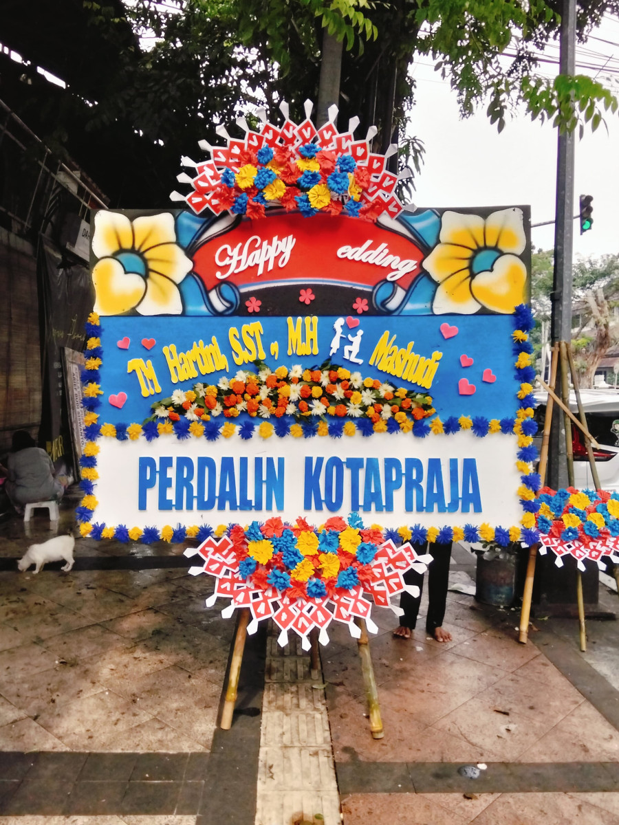Dalam momen pernikahan yang penuh haru dan bahagia, karangan bunga papan bisa menjadi bentuk perhatian yang tulus dan bermakna. Karangan Bunga Pernikahan Semarang #7 dari Raja Florist hadir dengan desain spesial, cocok untuk kolega, sahabat, ataupun keluarga.