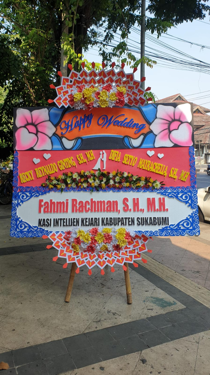 Papan bunga ini menggabungkan seni visual dan pesan personal. Dibuat oleh tim florist profesional dengan pengalaman puluhan event, desainnya akan selalu tampak rapi, modern, dan pas dengan suasana resepsi.