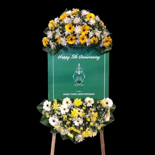 Karangan bunga papan mini ini hadir dengan desain modern berbasis printing, memberikan tampilan lebih detail, tajam, dan eksklusif dibandingkan papan bunga konvensional. Dengan ukuran 50 x 100 cm, papan ini lebih ringkas namun tetap elegan, cocok untuk berbagai acara spesial.
