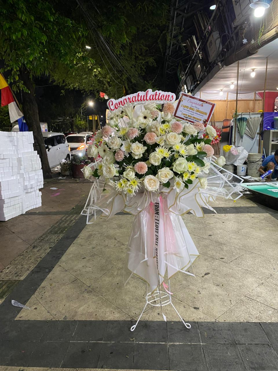 Ingin memberikan ucapan yang berbeda dari biasanya? Standing Flower Premium dari Raja Florist Semarang hadir dengan konsep inovasi baru, memadukan rangkaian bunga segar dengan balutan wrapping kertas cellopane premium. Hasilnya adalah standing flower yang tidak hanya elegan, tetapi juga tampak modern, mewah, dan unik dibandingkan rangkaian bunga tradisional.